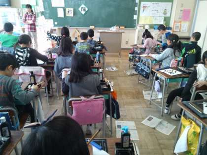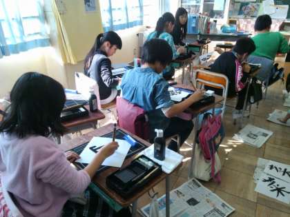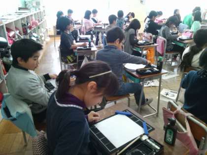 自分の名前の一文字を、心を込めて筆を運びました。出来上がりの作品が飾られるのが楽しみです。
