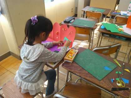 カッターの使い方をマスターし、工作に取り組みました。上手にカッターを使い、素敵な作品が出来上がりました。
