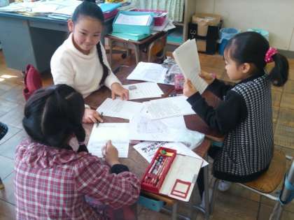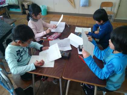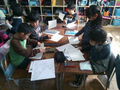 地域安全マップ作りに取り組んでいます。地域の中の安全な場所、危険な場所を見つけてきたことを発表していくための準備をしています。