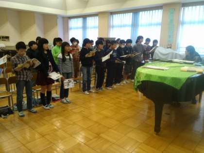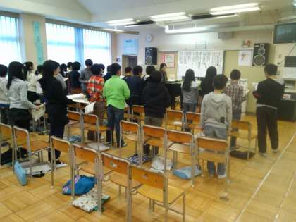 卒業式で歌う「旅立ちの日に」を練習しています。とてもいい声が出ています。