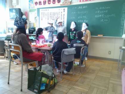 自分たちのグループが考えた究極のおにぎりを発表しました。見た目が究極であったり、栄養バランスが究極であったり他にも、食感や、地域性、具材等の究極があったりとグループごとに工夫が見られ、楽しく素晴らしい発表会となりました。