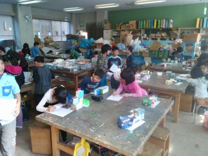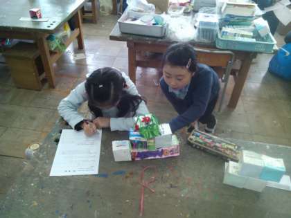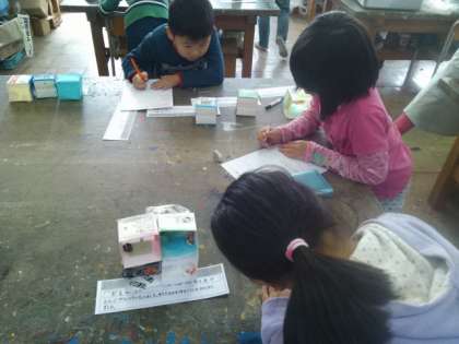 「小さなはこものがたり」の工作が完成し、てんらんかいを開きました。友達の作品を見合い、作品のいいところを発表し合いました。