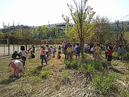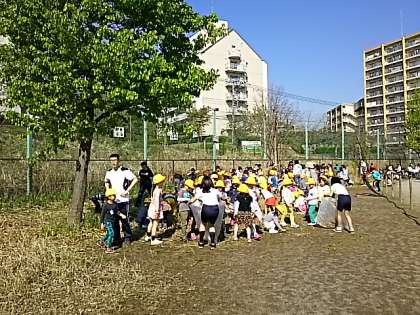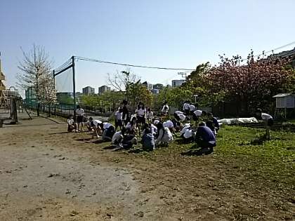 今日の集会は、校庭の草を取り、きれいにする活動です。たくさん草がありましたが、皆頑張りました。