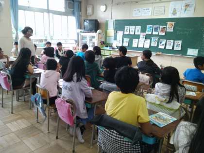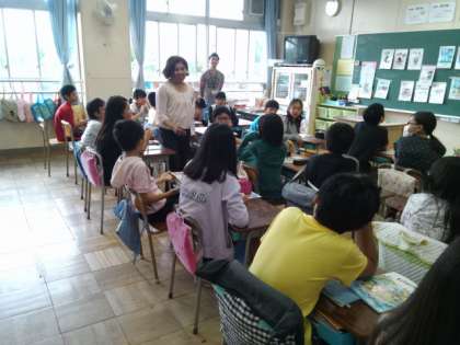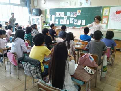 ALTによる英語の授業です。誕生日をたずねたり、答えたりする学習をしているところです。