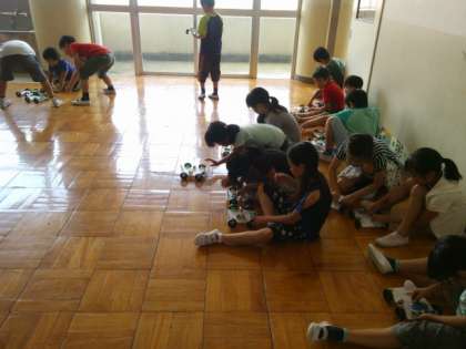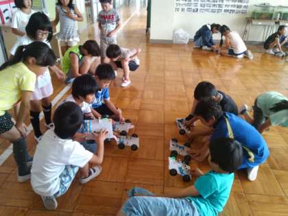 「電池のはたらき」の学習です。今回は電池のつなぎ方による、モーターの速さの違いについて調べました。