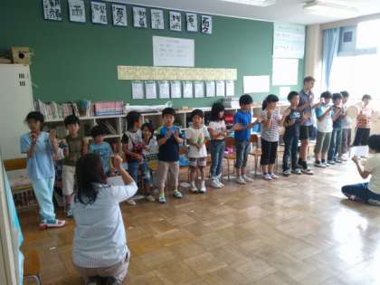 合唱団スイートママレードさんとの交流です。合唱団の方へお礼の歌と合奏を披露しました。いい交流会となりました。