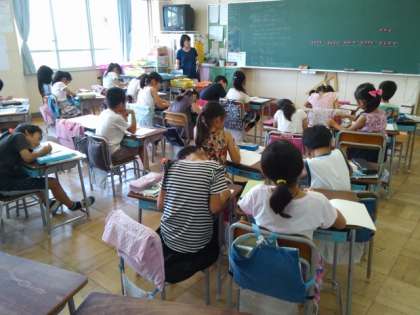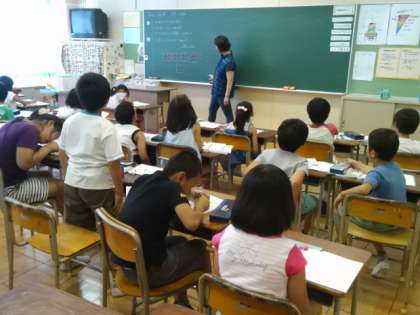 「あまりのあるわり算」の発展的な学習です。文章題の意味をよく考えて答え方を考えなくてはなりませんでした。図に表しながら、じっくりと考えていました。