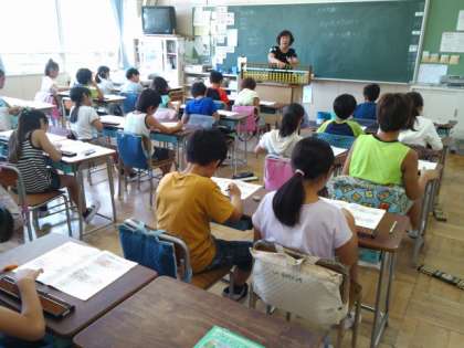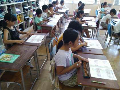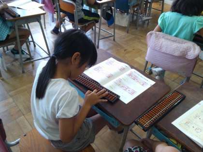 そろばん講師の先生による、そろばんを活用した学習をしました。憶や兆などの大きな数の計算や、小数点以下の小さな数の計算もそろばんを使って行いました。そろばんを活用することの良さに気付いたことでしょう。