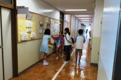 今日から3日間、ユニセフ募金の活動を行います。今日は朝から、係の児童が校舎内の数か所に募金箱を持って立ちました。