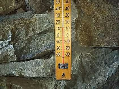 起床です。今、検温をしています。天気はくもり。気温は14度。