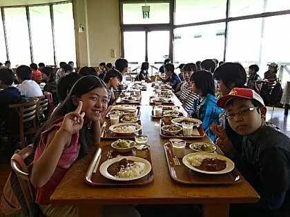 長門牧場に到着しました。子供たちが大好きなカレーライスです。