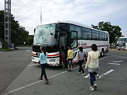 予定より双葉サービスエリア到着が遅れています。学校到着は4時半から5時ごろを予想しています。