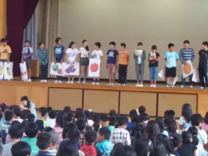 全校でのお楽しみ集会では、果物ビンゴゲームをしました。ビンゴになると、みんな大喜びで、大変盛り上がりました。
