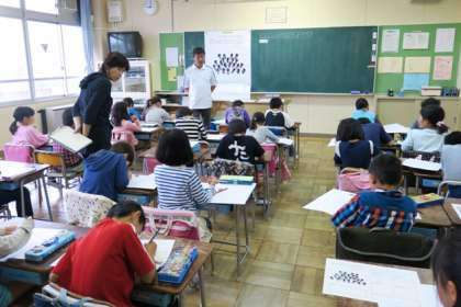 2年生が算数で、ばらばらに並んでいるものの数をわかりやすくなるようにするには、どのように並べたらよいのか考えました。