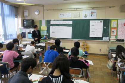 本校が小学校習熟度別指導担当者研修会の会場となったため、市内の算数担当の先生方が6年生の授業を参観しました。子供たちは、普段通りによく考え、自分の考えを発表していました。