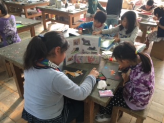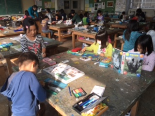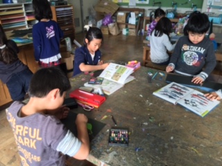 パステル画に挑戦しています。動物や自然など、自分で好きなテーマを選び絵に表現していました。
