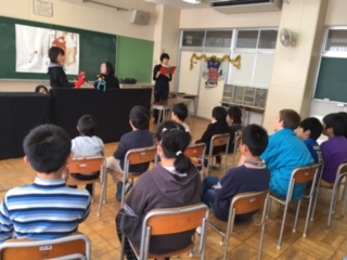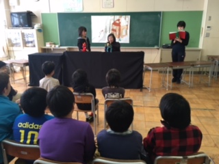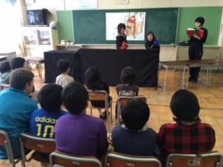 おおぞら学級の補助員の方々が力を合わせて、おおぞら学級の子供たちのために、ぐりとぐらのお話を人形劇で見せてくださいました。子供たちはじっくりと見ながら人形劇を楽しんでいました。