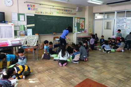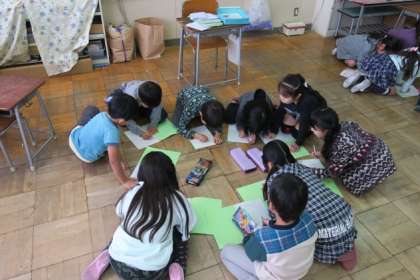 1年生がミニ子どもまつりに向けてグループごとに話し合いをしました。どんな係が必要なのか、よく考えていました。