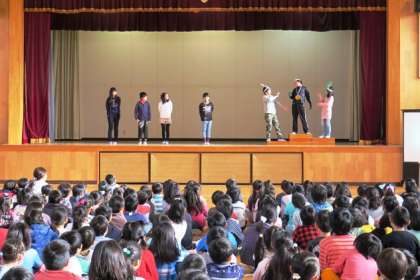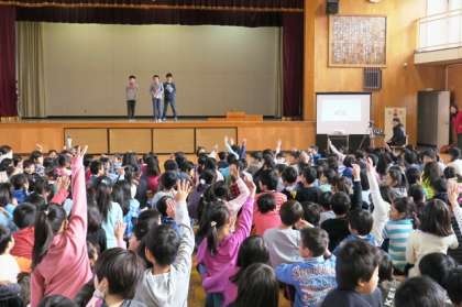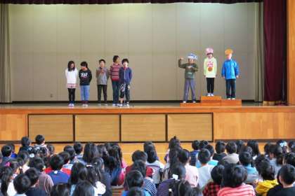 今日の集会は、給食・保健委員会の発表でした。以前にアンケート調査を行った「好きな食べ物」「嫌いな食べ物」について、それぞれ、3位まで発表しました。