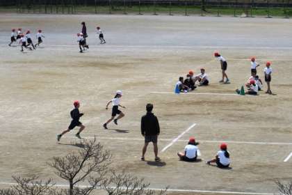 運動をするにはちょうどよい気候となりました。各学年、体育では短距離走(かけっこ)をしています。