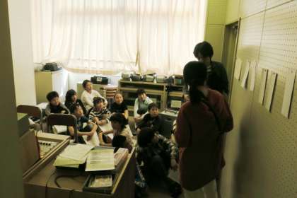 写真は、放送委員会、集会委員会、図書委員会の様子です。