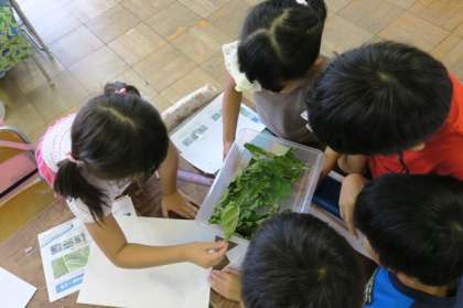 3年生が蚕を飼っています。蚕がだんだん大きくなっているのがよくわかり、子供たちはうれしいようです。新鮮な桑の葉を与えています。