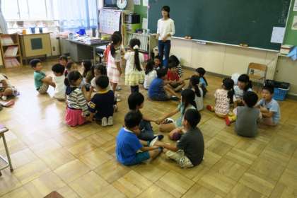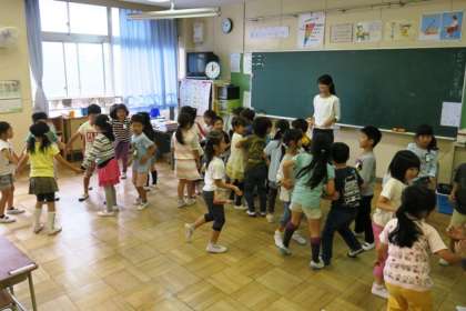 1年生が生活科で「がっこうだいすき ともだちだいすき」の学習をしています。いろいろな友達と接するため、活動を工夫しています。