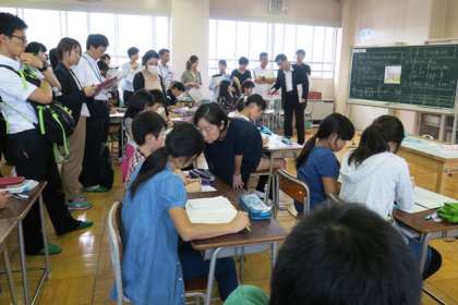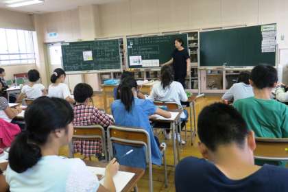 八王子市小学校教育研究会の算数部の研究会が本校で行われました。6年生の算数「分数のわり算」の研究授業を、他校の100名以上の先生が参観しました。