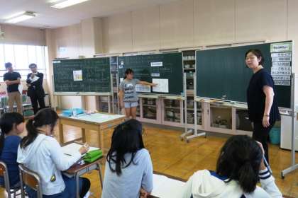 研究授業後には、文部科学省 教科調査官の笠井健一先生からご指導いただきました。子供たちは数直線、計算のきまり、面積図などを使って、計算の仕方をよく考え、説明していました。