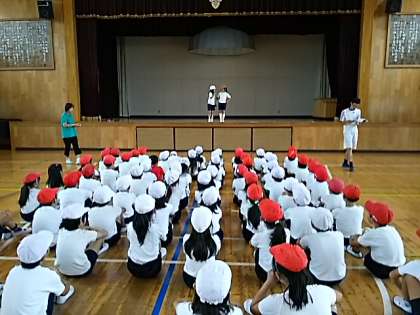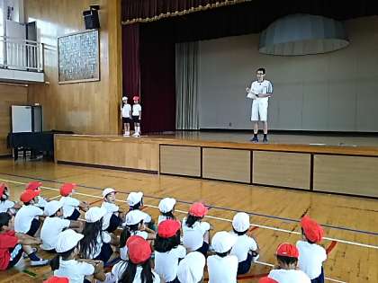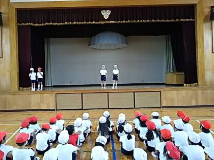代表児童が今年のめあてをしました。大変立派でした。先生から注意事項の話、校長先生の話と進みました。来週はよい天気になることを願っています。