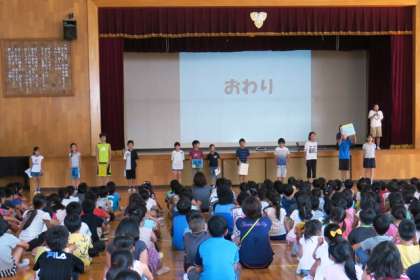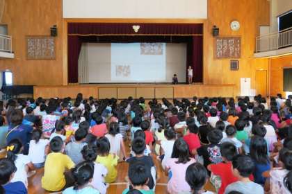 本校では、毎年、児童会・代表委員会の活動の一つとして、ユニセフ募金活動を行っています。明日から3日間の募金日を前に、児童会・代表委員会の児童が、ユニセフの活動などについて説明する集会を行いました。クイズなどを交えながら、調べたことを上手に説明していました。