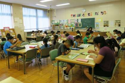 4年生がエアコンを設置した図書室で読書をしました。蒸し暑い日が続いています。快適な環境で読書することができ、子供たちはうれしそうです。