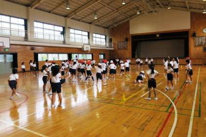 2年生が学年合同でドッジボールをしました。ルールを守って楽しく活動することができました。