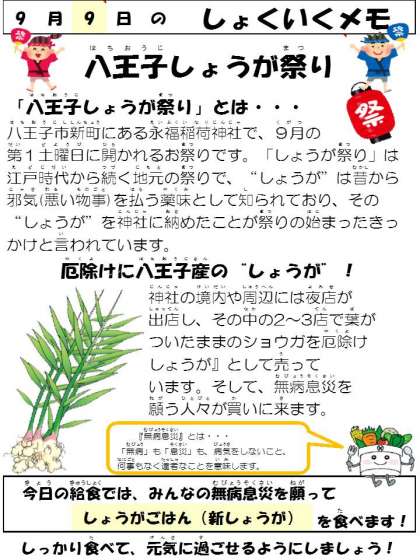 9月3日(土)に行われたしょうがまつりにちなんで