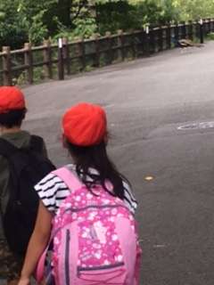 ニコニコ班、二年生頑張っています。そんな中道にクジャクが!ゾウも大人気です。
