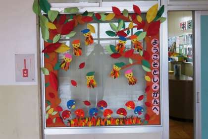 今日は、保護教の図書活動の日でした。図書室の入口にある装飾が夏から秋へと変わりました。いつも子供たちのためにありがとうございます。
