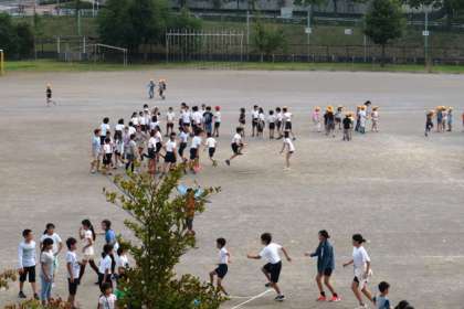 10月6日の大なわ集会に向けて、各学級で大なわの練習をしています。20分休みは全校で練習し、昼休みも学級によっては練習しています。