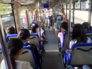 4年生、6年生はバスに乗って八王子サイエンスドームへ出発です。