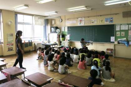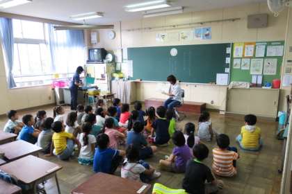 写真は、1年生の読み聞かせの様子です。