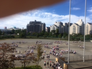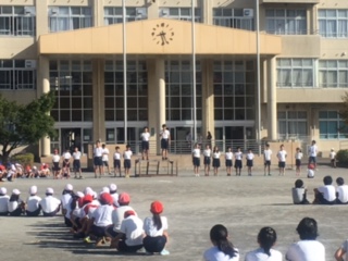 今朝は体育委員会の企画による大なわ集会です。クラスごとに設定した目標回数に向けて三分間、心を合わせて跳んでいきます。