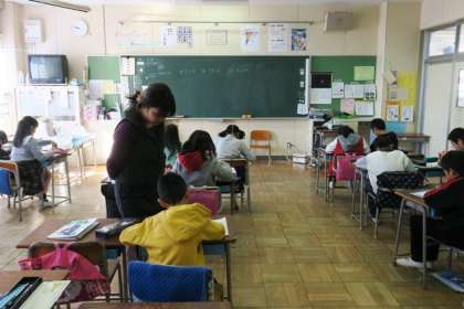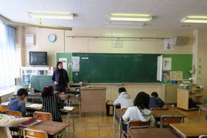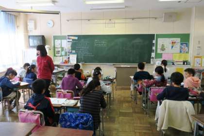 4年生が算数で小数のわり算について学習しています。今日は、計算の仕方を考えました。今まで学習したことを活用してよく考えていました。