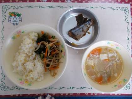 今日は、和食です。秋刀魚の臭いを消すために梅干しをいれて作りました。苦手なお友達も多いけれど一口から挑戦してほしいです。