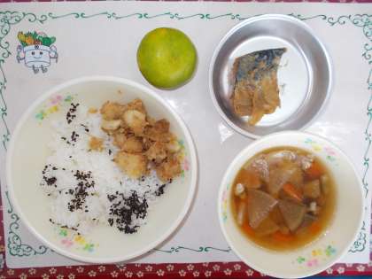秋分の日も過ぎ、朝、晩に秋の気配を感じます。今日は、鯖、里芋、じゃが芋、早生みかんで初秋を感じる献立にしました。