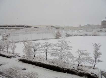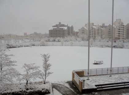 今朝は予報通り、またもや雪景色に一変してしまいました。昨日はほぼ校庭の地面が見えていましたが、今朝は写真の通りです。しばらく校庭の使用ができそうにありません…