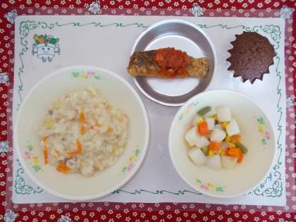 今日の6年生の元気応援メニュー「魚のプロバンスソースがけ」です。おすすめのポイントは、下味に体を温める生姜を使っていることです。詳しくは食育メモでお知らせします。