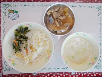 今日の6年生元気応援メニューは、「よごし」です。おすすめのポイントは、野菜がたくさん使われているところです。野菜は、体の調子を整えるビタミンや食物繊維が多くあります。詳しくは食育メモでお知らせします。