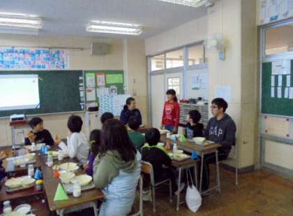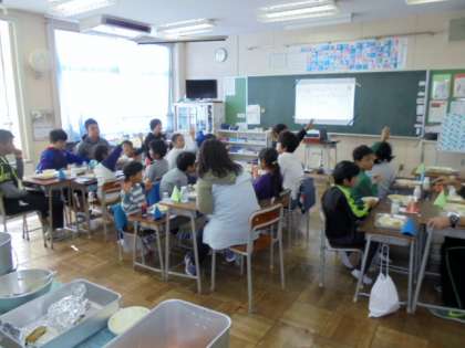 さて、昨日から4年生とおおぞら学級の子供たちが、交流給食の時間を過ごしています。通常の学級の子供たちがグループに分かれて、毎日、給食に訪れて、自己紹介やクイズで交流を深めています。日常の交流活動や共同学習など、多くのことを一緒に行っています(^^♪