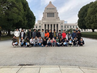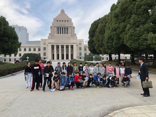 国会議事堂の正面で記念撮影をして、次の科学技術館れ向けて出発しました。
