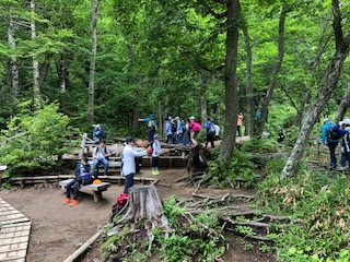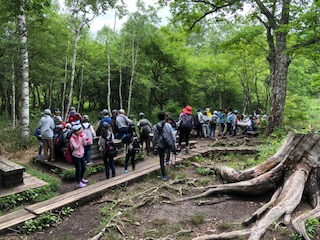 戦場ヶ原ハイキング、だいぶ進んできました。どのグループの休憩です(^。^)