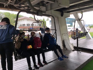昼食も終わり、リフトに乗って、頂上に向かっています。